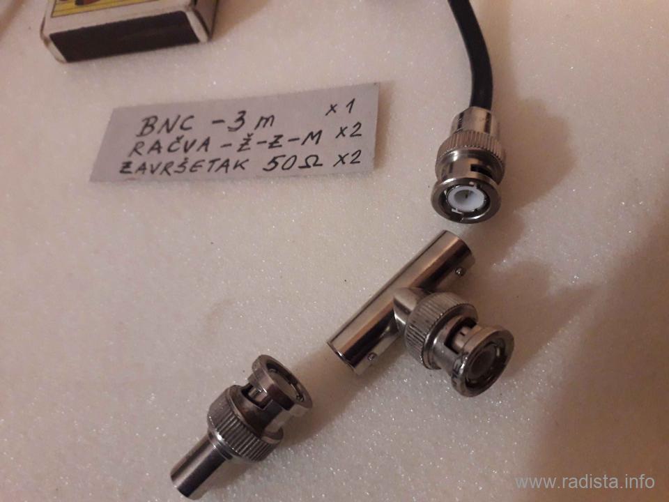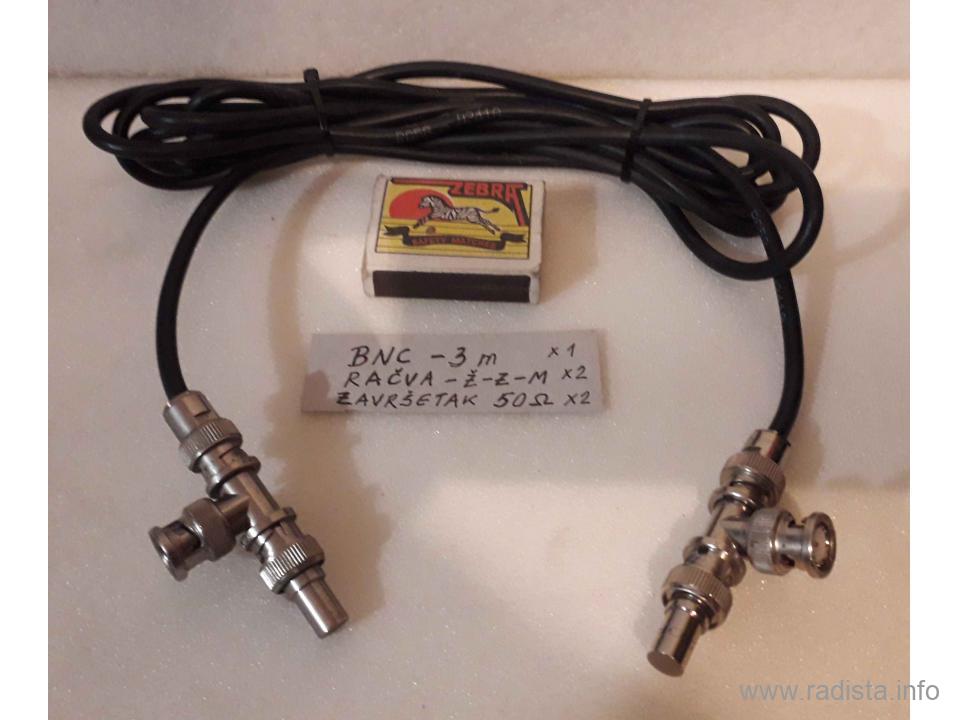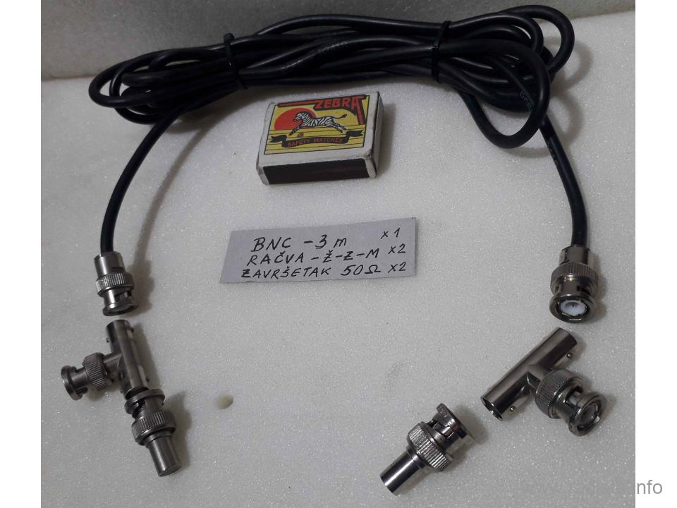 Kabl sa BNC konektorima,racvama i terminatorima 50 oma.Sastav kompleta vidljiv na slikama.Cena za jedan komplet.